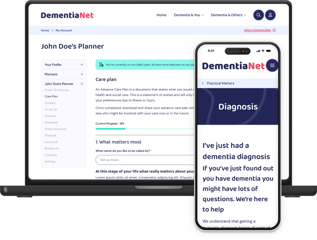 Claim your full-access free trial to our easy DementiaNet Planner and start today. Remember, you don't have to climb the full staircase in one go, just take the next step.